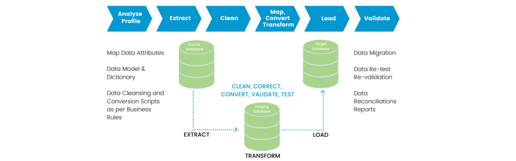 SoftSol has developed a comprehensive data transformation solution that helps the clients in migrating their critical data from legacy databases (Mainframes, RDBMS, Flat files) to the modern databases, ERPs or even in the cloud.